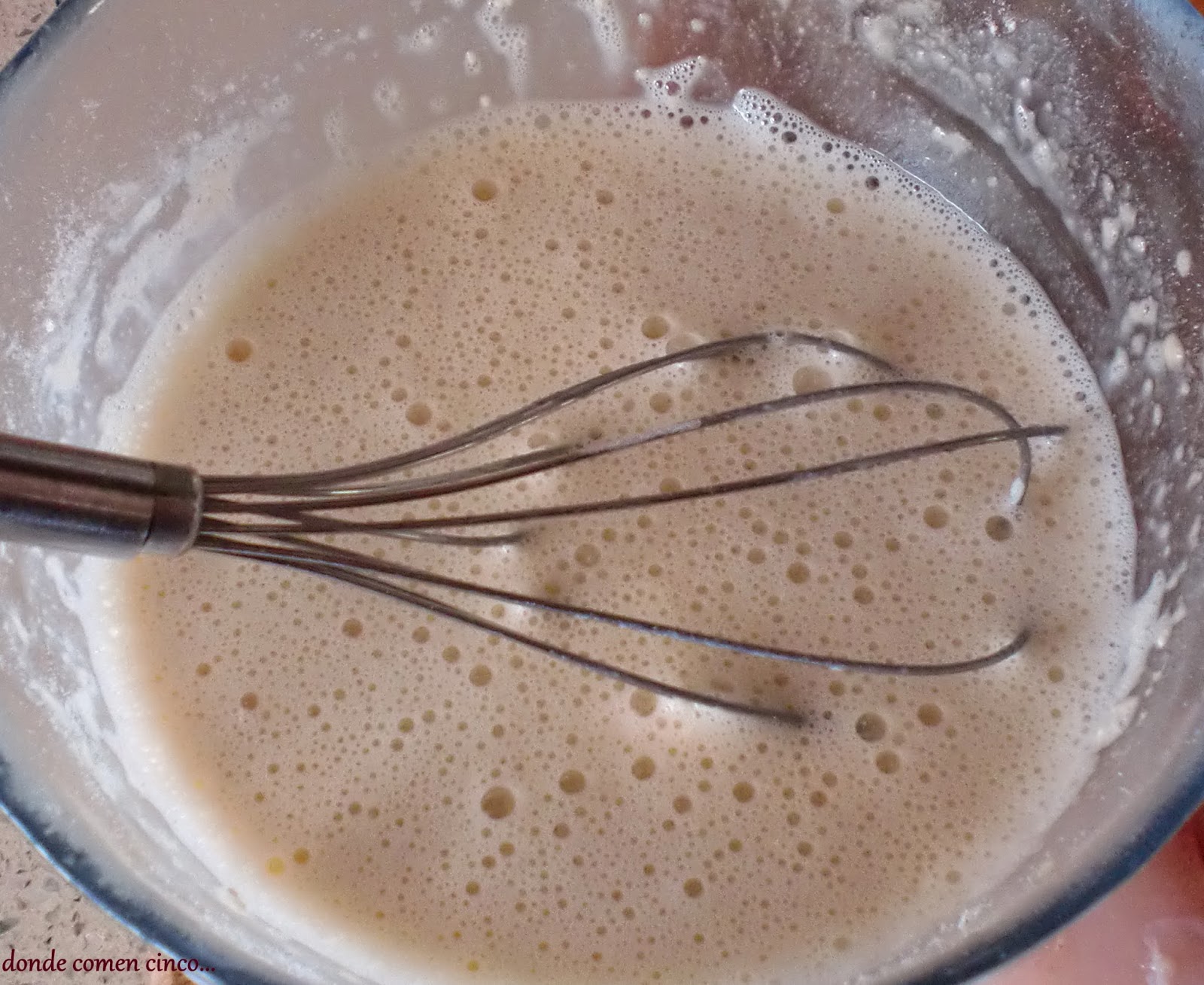 Esto es ya el último paso, ahora echamos sobre el molde que elijamos y metemos al horno que estará precalentado a 180º unos 35 /40 minutos dependerá siempre del molde que hayaís elejido ya que la altura y diámetro es diferente en cada molde así que si lo queremos pequeño de diámetro pero alto pues tardará más que si elejimos uno ancho y bajo, pero menos de ese tiempo no tardará, a la media hora vais pinchando con el cuchillo, a mi me ha tardado casi cuarenta minutos.